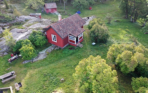 Under vår, sommar och höst finns möjlighet för medlemmar i Naturskyddsföreningen att hyra husen på ön Stora Sandböte i Stockholms skärgård.